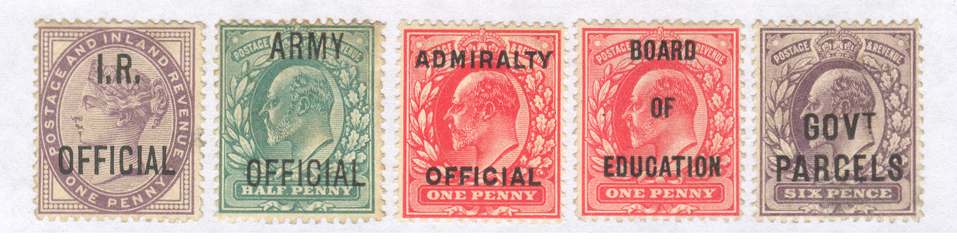 These are official overprints prepared for the use of various Government Departments. A word of warning, there are many forged overprints, particularly on the rare items. When buying, compare the overprint to a known genuine example (say a poor common example). Any postmark should obviously be on top of the overprint and also the overprint is usually easily legible from the back of the stamp. Be wary of say an ebay item that does not show a scan of the back, especially if the seller appears to have large numbers of officials for sale. |